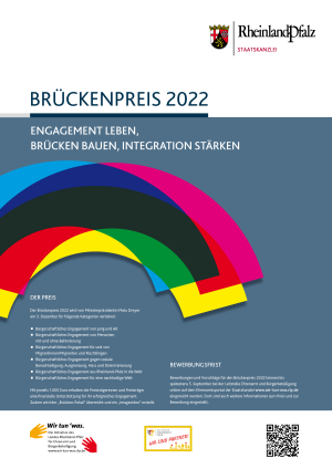Bis zum 5. September können Bewerbungen für den Brückenpreis 2022 online auf dem Ehrenamtsportal der Staatskanzlei eingereicht werden: Brückenpreis rlp.de.