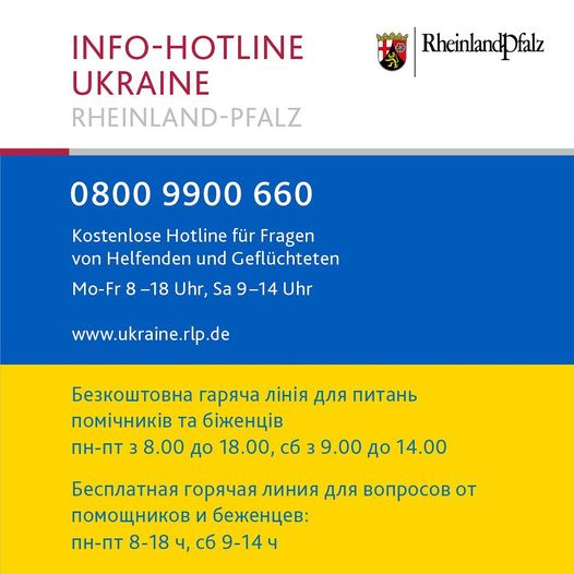Ab sofort gibt es die „Info-Hotline Ukraine", ein mehrsprachiges und kostenloses Informationsangebot, das sich an Helferinnen und Helfer, sowie an ukrainische Kriegsflüchtlinge richtet.