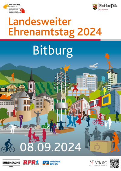 „In Bitburg hat das Ehrenamt einen besonders hohen Stellenwert. Die Stadt gehört zum Bundesnetzwerk ‚Engagierte Stadt‘ und zeichnet sich durch ein vielfältiges Vereins- und Gemeinschaftsleben aus. Ich freue mich deshalb sehr, dass wir mit dem Ehrenamtstag in diesem Jahr in der Eifelstadt zu Gast sein dürfen. Ich bin mir sicher, dass Bitburg ein toller Ausrichter sein wird“, sagte Ministerpräsidentin Malu Dreyer. Auch Bürgermeister Joachim Kandels sieht dem Ereignis mit Freude entgegen: „Wir wollen ein guter Gastgeber des Ehrenamtstages 2024 sein und freuen uns auf viele ehrenamtlich engagierte und interessierte Menschen, die sich in Bitburg treffen und austauschen sollen.“