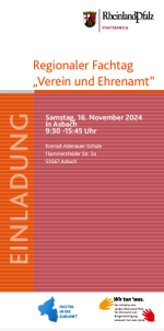 Anmeldungen sind ab sofort bis zum 8. November 2024 möglich: Anmeldeformular Fachtag Verein und Ehrenamt . Die Initiative des Landes Rheinland-Pfalz für Ehrenamt und Bürgerbeteiligung (rlp.de).