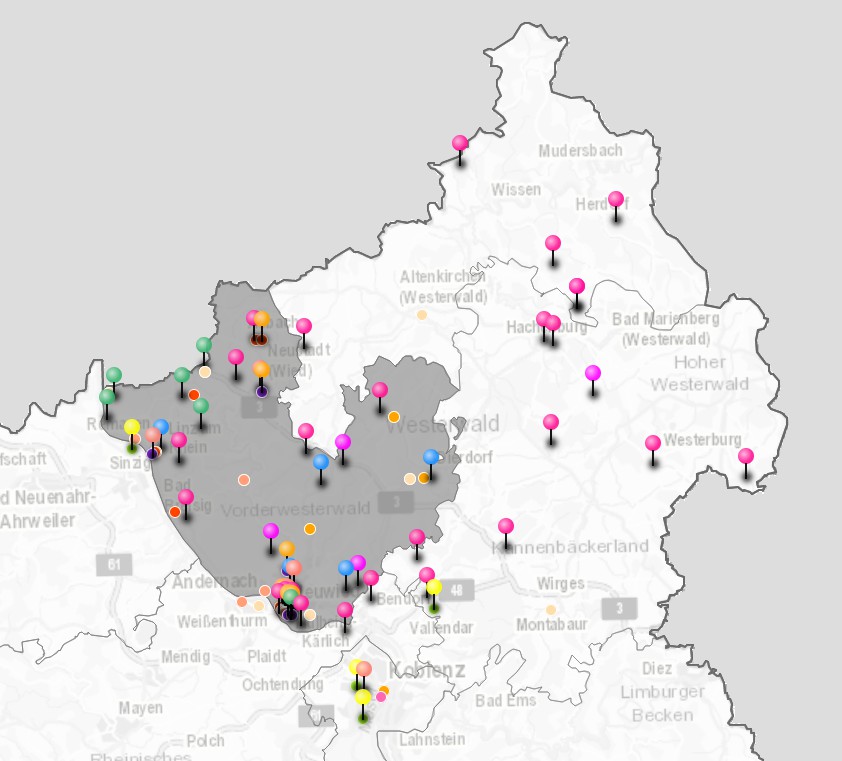 „Die Kartendarstellung wurde in Zusammenarbeit mit der MINT-Geschäftsstelle und dem Landesamt für Vermessung und Geobasisinformation Rheinland-Pfalz zur Verfügung gestellt und durch den Landkreis Neuwied mit regionalspezifischen Informationen ergänzt.“