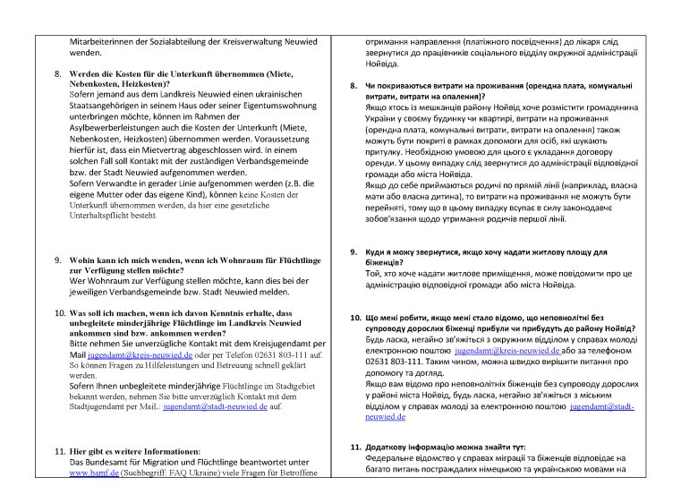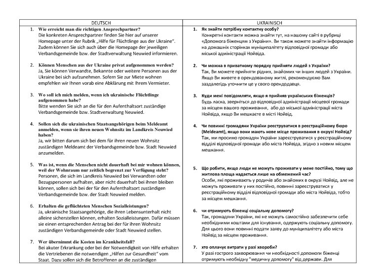 FAQ für ukrainische Flüchtlinge von der Kreisverwaltung Neuwied / FAQ для українських біженців з районної адміністрації Нойвіда