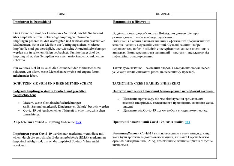 Informationen zum Infektionsschutz auf Ukrainisch / інформації Для вакцинації проти COVID-19