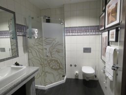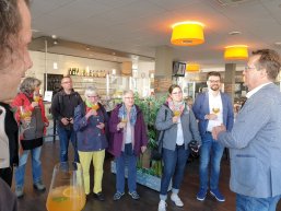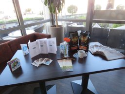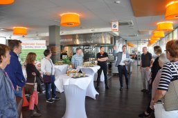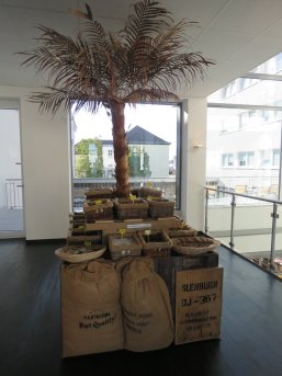 Interessierte trafen sich im Innenhof des food hotels Neuwied um von dort aus die 3 geplanten Stationen, food hotel, Bäckerei Geisen und den Eine Welt Laden aufzusuchen. Geschäftsführer Jörg Germandi reichte zum Einstieg ein frisch gepresstes Begrüßungsgetränk aus fair gehandelten Orangen sowie einen fairen Gruß aus der Küche. Im Gespräch wurde deutlich, dass das food hotel einen Hohen Wert darauf legt, regionale und fair gehandelte Produkte anzubieten. Am Vortag des Rundganges wurde das 1. Fairtrade-Themenzimmer Deutschlands fertig gestellt. Als Überraschung präsentierte Alexander Bornat von Fairtrade Deutschland (Verein TransFair e.V.) stolz, der 1. Gruppe überhaupt, das im Afrika-Look gestaltete Zimmer. Das Zimmer sowie der Einsatz von Fairen Produkten im food hotel sorgte für große Begeisterung.