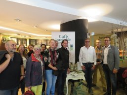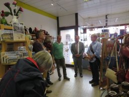 Die 2. Station führte in die Bäckerei Geisen. Wolfgang Geisen führte die Fair Trade - Interessierten in die Philosophie der Bäckerei ein. Dem Unternehmen ist es sehr wichtig, regionale Produkte in seinen Backwaren und dem sonstigen Angebot zu verwenden und den Kunden anzubieten. Da Kaffee nicht in unserer Region angebaut werden kann, bezieht er diesen schon seit langem aus fairem Handel. Das interessante Gespräch sorgte für neue Ideen in der Bäckerei und erfreulichen Kenntnissen bei den Teilnehmern.