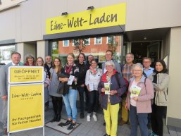 Auf dem Weg zu der letzten Station, dem Eine-Welt-Laden, gesellte sich auch der Oberbürgermeister der Stadt Neuwied Jan Einig hinzu.Vorstandsmitglied Rainer Kunze stellte den Eine-Welt-Laden aber auch das Konzept des Fairen Handels vor. Ehrenamtliche Mitarbeiter setzen sich hier schon seit fast 40 Jahren für den fairen Handel ein. Es wurde deutlich, dass der Faire Handel nicht als Konkurrenz zu heimischen Produkten zu sehen ist, sondern es darum geht, dass die Kleinbauern und Plantagenarbeiter entsprechend Ihrer Arbeit entlohnt werden.