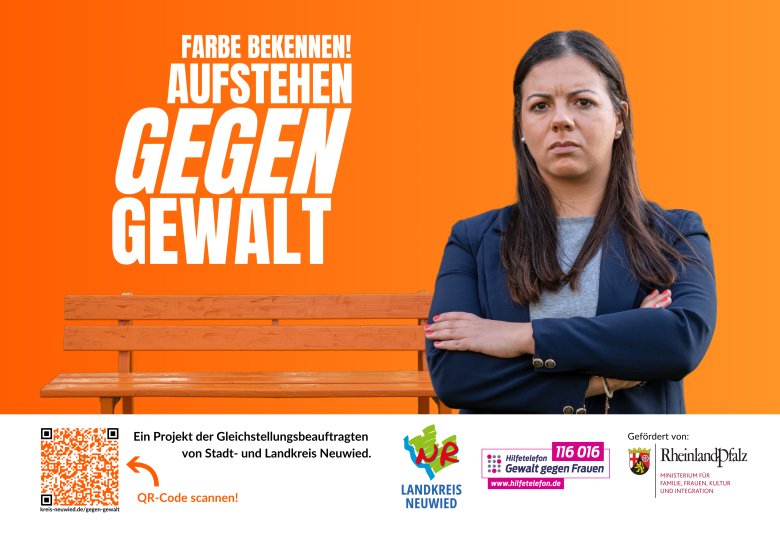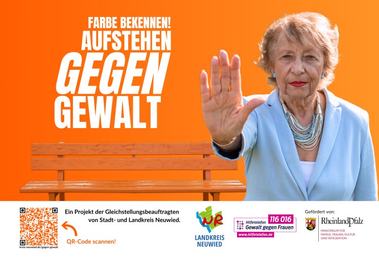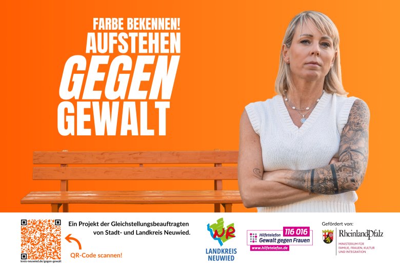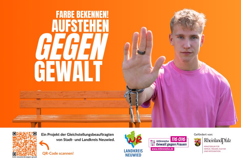Vom 15.11.-25.11.24 werden an 16 Standorten in Stadt und Kreis Neuwied großformatige Plakate (9qm) mit dem Slogan „Farbe bekennen- Aufstehen gegen Gewalt“ zu sehen sein.