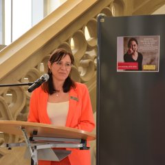 Mit Rosa Engel hielt die Künstlerin selbst einen zum Nachdenken anregenden Impulsvortrag über „Wut und Weiblichkeit“. Sie betonte die Bedeutung des Gefühls „Wut“ für Frauen, denen dieses nach wie vor gerne aberzogen wird – teils mit fatalen Folgen, zum Beispiel Depressionen.