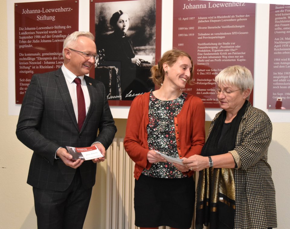 In einer Feierstunde überreichte Landrat Achim Hallerbach der Mitgründerin der Frauenrechtsorganisation TERRES DES FEMMES – Menschenrechte für die Frau e.V., Ingrid Staehle, den Ehrenpreis der Johanna-Loewenherz-Stiftung 2017, der einzigen Kommunalen Frauenstiftung in Rheinland-Pfalz.