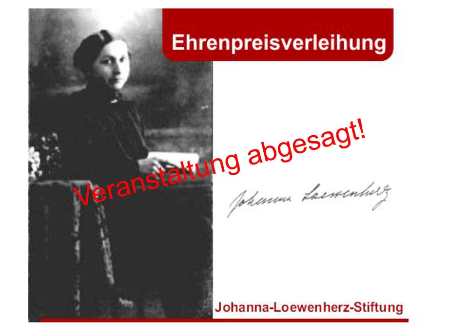 Hiermit möchten wir Ihnen mitteilen, dass die für 12. März, 17 Uhr geplante Verleihung des Johanna-Loewenherz Ehrenpreises im Roentgenmuseum Neuwied ausfällt.