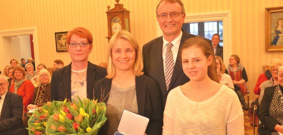 Die Literaturwissenschaftlerin und zwölffache Paralympics-Siegerin im Biathlon und Skilanglauf ist seit 2014 die Beauftragte der Bundesregierung für Menschen mit Behinderung. In ihrer Laudatio würdigte Claudia Altwasser, Vizepräsidentin des Landessportbundes Rheinland-Pfalz die Preisträgerin als eine Frau, die Menschen Mut mache und motiviere, die als Vorbild für viele, gerade auch behinderte Frauen zeige, dass mit Lebensfreude und Kraft vieles überwindbar sei, dass anfänglich unüberwindbar erscheine. Den Ehrenpreis der Stiftung gab Verena Bentele gleich weiter an die Integrierte Gesamtschule Johanna-Loewenherz und die Landesschule für Blinde und Sehbehinderte mit der Auflage Selbstverteidigungskurse für Mädchen mit dem Geld zu finanzieren.