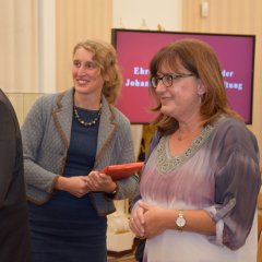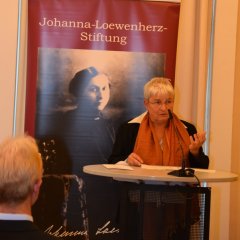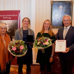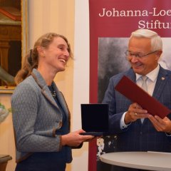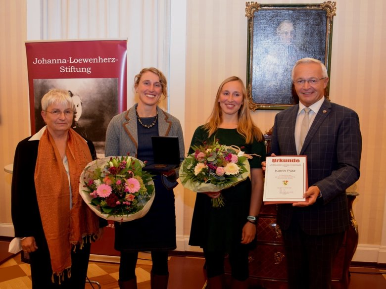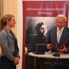 Landrat Achim Hallerbach zeichnet Katrin Pütz mit dem Johanna-Loewenherz-Ehrenpreis des Kreises Neuwied aus.