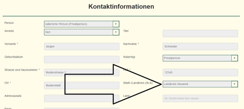 Bitte beachten: Bei der Registrierung muss zwingend der richtige Landkreis ausgewählt werden, damit die Meldungen auch vom System zugeordnet werden können :