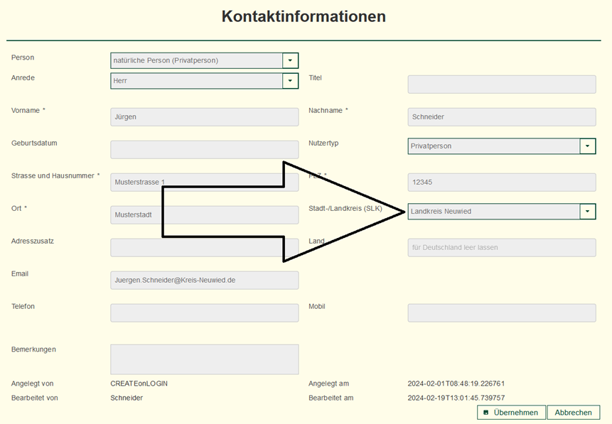 Die untere Naturschutzbehörde wird bei Änderungen vom System informiert und prüft die Angaben, bevor diese dann abschließend übernommen werden.