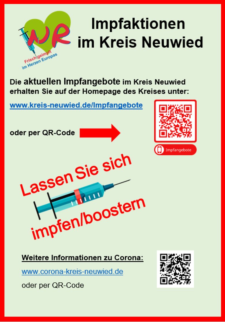 Die Kreisverwaltung und die Stadtverwaltung Neuwied arbeiten Hand in Hand, um die Coronapandemie zu überwinden. Das Projekt "Impflotsen Rheinland-Pfalz" wird gefördert vom Landesministerium für Wissenschaft und Gesundheit. Die Landeszentrale für Gesundheitsförderung in Rheinland-Pfalz (LZG) unterstützt im Rahmen dieses Projekts Kommunen dabei, wohnortnah Menschen mit fehlendem oder unvollständigem Corona-Impfschutz über den Nutzen der Impfung zu informieren und sie zur Annahme eines Impfangebotes zu motivieren.